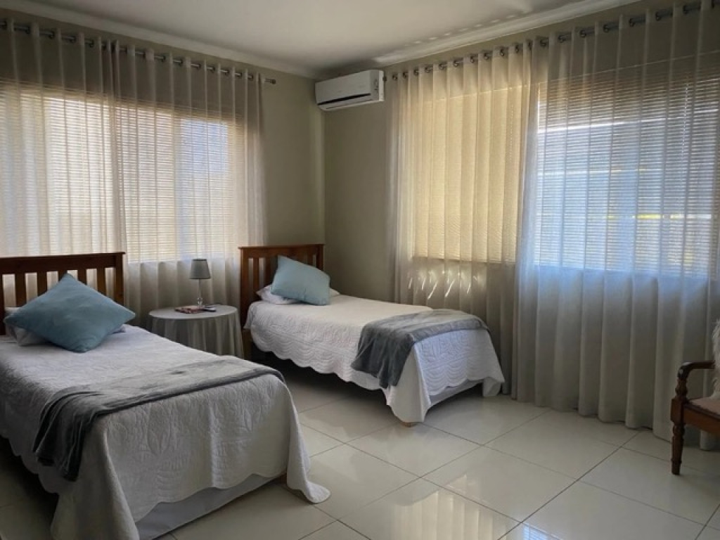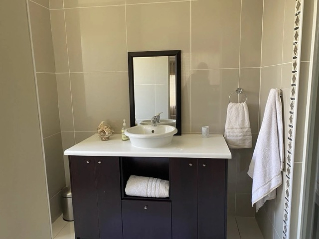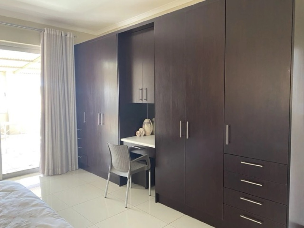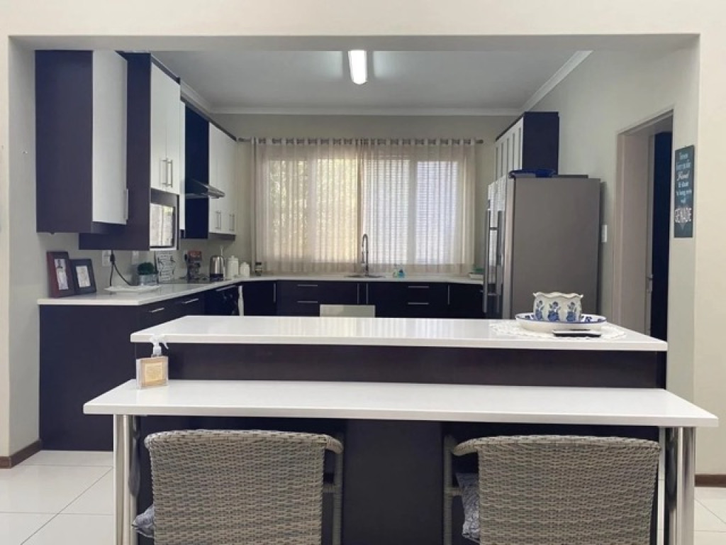 There is a huge open plan living area with kitchen and separate scullery. The sliding doors opens to an extra-large veranda with a build-in barbeque. Double automated garage and a lovely garden.